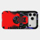 White: Incorporated for swirling lines and accents, creating a striking contrast against the black and red.