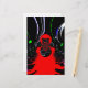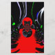 This artwork features a central, symmetrical design that radiates outward, characteristic of a kaleidoscope. The complex arrangement of fluid lines and shapes converges and diverges, creating an engaging focal point. The stark contrast between the black background and the vibrant red and white elements enhances the central design's visibility.