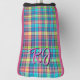 This colourful, vibrant blue, purple, green, turquoise, green, yellow, pink, black, and white plaid will look amazing on the golf course on your personalised golf gear and golfing accessories.