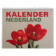 Calendar of The Netherlands with public holidays. It is in Dutch language. Kalender met feestdagen Nederland. Muurkalender. Natuurkalender met bloemen en planten.