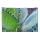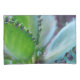 The original photograph by ZoeSPEAK on this Pillowcase Set is a semi-abstract closeup of a kalanchoe plant. The photo shows the leaves in different lighting, causing their normally bluish green colour to appear yellow green and aqua blue. The sculptural new growth on the edges of the leaves, looking like jewellery on each leaf, appears dark green and deep teal blue.