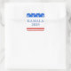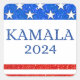 This stylish and patriotic Kamala Harris election campaign sticker features an American flag design. A banner of white stars is placed across the top over a blue glitter style background. A banner of red and white stripes is placed along the bottom portion, with a glitter style pattern for the red stripes. The image resembles the U.S. flag. Kamala is printed across the centre, with the 2024 election year printed below in a matching blue glitter font.