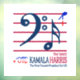 Kamala = comma and la with comma represented by the F-clef or bass clef and the note la which in music is normally placed on the first space (starting from the bottom) and on the first line (starting from the top) of the bass-clef staff. The note la is represented by the sixteenth note that looks like an F and an upside-down quarter note that looks like a P. The letter F is for the words first and female and the letter P is for the word president. Walz is written with an upside-down eighth note that looks like an L. The red lines of the staff represent the red stipes of the US flag. The four stars represent the Democratic Party election symbol.