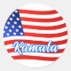Kamala Harris for President Elegant Script US Flag Classic Round Sticker. For a Kamala Harris presidential campaign supporter design, a bold and empowering layout that combines typography and patriotic symbols to create a striking visual statement. At the centre of the design, feature Kamala Harris's name in large, elegant typography. Use a modern font to convey a sense of forward-thinking and progress. To enhance the design's visual appeal, add a subtle, polished finish with a shadow effect, giving the typography a sense of depth and dimension. This approach not only highlights Kamala Harris’s name but also ensures the flag’s colours and patterns stand out vibrantly. This product aims to celebrate Kamala Harris’s candidacy with a strong, patriotic flair, using typography and the U.S. flag to create a powerful, supportive statement for her presidential campaign.