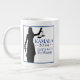 Kamala Harris for President Let's Get to Work Justice 2024 Election giant coffee design. Kamala Harris has been vice-president and has previously led complex organisations with complicated and contradictory relationships to people, and she can do it again. Let's get to work if we want to restore basic principles of accountability to our politics. Let's get to work if we want to end Trumpism as a viable political path to power in this country. Design description: A black silhouette of lady justice holding up the scales of justice and holding down the sword of justice is on the left side of the design. Underneath the upraised scales of justice are the words, "Kamala 2024" in blue all-caps font, with two red stars on each side of the 2024. Below that, across from the hilt of the sword of justice, are the words in blue font over two lines, "Let's Get to Work." Same design on both sides.
