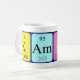 Kamila spelled out as K Am I La (Potassium Americium Iodine Lanthanum) on a mug for the scientist in you.