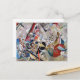 Kandinsky In Grey postcard. Oil on canvas from 1919. Russian artist Wassily Kandinsky painted some of the most vibrant works of the abstract movement. In grey is a more reserved though nevertheless striking painting by this great artist. The work features swirling organic reds, blues greens and blacks over a soft grey background. The study is a lovely expression of the artist’s belief that all colours contained beauty and possibility. A great gift for fans of Wassily Kandinsky, abstract painting, and Russian art.