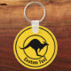 Yellow kangaroo silhouette. Vector icon with custom colour. Custom background colour. Custom text on both sides.