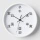 A clock with the kanji of the Chinese zodiac, placed by their associated time of the day. The inner circle is for day time; outer circle for night time.