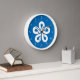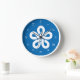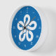 Clock with a design with the flag of Fukuoka Prefecture in Japan (福岡県 , Fukuoka-ken), a blue flag with a white symbol., with kanji clock face