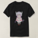 I give wanted to give this a 4 instead of a 5 because these Basic DARK T0shirts run unexpectedly SLIM or Narrow. Which is great if you do not have a potbelly, but I have a paunch. It isn't the shirt's fault that I've got a beer belly. The design and shirt itself is a quality cotton shirt. The color is more of a deep purple, but still a very pretty color. The Basic DARK T-shirts run a bit SLIMMER than the Basic Ts. The neck is a fraction narrower (or seems to be narrower) also. I'm a paunchy middle-aged woman and my neck is 12 inches (31cm) thick and the neckline fell about the same as in the photo of the man, and I had the desire to tug it a bit. So if you're a thick necked man or like loose shirts, be aware these are slimmer shirts. Once I get rid of my lockdown paunch it'll look great. The shirt washed well in cold water with no apparent bleeding. We don't have a dryer, so it hung dry. Did not shrink. Love the colors and the design. The design looks smaller on my shirt than it does on the model on-line. But still, it looks good on the shirt. The printing looks as it does on the model, just the size seems fractionally smaller. Washed garment in cold water, hung dry and design appeared unaffected.