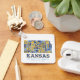 Keychain with a colourful illustration of the people, places and things that make Kansas a special state!
