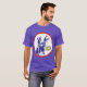 I give wanted to give this a 4 instead of a 5 because these Basic DARK T0shirts run unexpectedly SLIM or Narrow. Which is great if you do not have a potbelly, but I have a paunch. It isn't the shirt's fault that I've got a beer belly. The design and shirt itself is a quality cotton shirt. The color is more of a deep purple, but still a very pretty color. The Basic DARK T-shirts run a bit SLIMMER than the Basic Ts. The neck is a fraction narrower (or seems to be narrower) also. I'm a paunchy middle-aged woman and my neck is 12 inches (31cm) thick and the neckline fell about the same as in the photo of the man, and I had the desire to tug it a bit. So if you're a thick necked man or like loose shirts, be aware these are slimmer shirts. Once I get rid of my lockdown paunch it'll look great. The shirt washed well in cold water with no apparent bleeding. We don't have a dryer, so it hung dry. Did not shrink. Love the colors and the design. The design looks smaller on my shirt than it does on the model on-line. But still, it looks good on the shirt. The printing looks as it does on the model, just the size seems fractionally smaller. Washed garment in cold water, hung dry and design appeared unaffected.