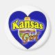Leuke magneet met een hart afgebeeld met de Kansas vlag erop. Op de tekst staat: Kansas girl De achtergrond is in de kleur wit. Leuk om te geven als cadeau of voor jezelf om te laten zien dat je trots bent om uit Kansas te komen.