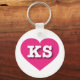 This key chain features a vibrant hot pink heart containing the bold, white, upper case letters KS, the official abbreviation for Kansas, the sunflower state.