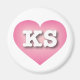 This magnet features a pink heart with a white washed centre containing the bold, white, upper case letters KS, the official abbreviation for Kansas, the sunflower state.