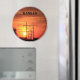 A shot of a Kansas Sunset with power line silhouettes closeup that's bright and colourful . North of Hutchinson Kansas.That's on a Round Magnet.
