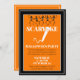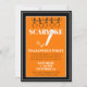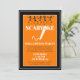 This flat card front in black and white template text over an orange and black background is a fun karaoke / scaryoke Halloween party invitation. The top border has dancing skeletons.The matching skeleton design centered on the back over an orange background. Personalize the template text for your party, remove text, or click customize to select a typeface style, size, and color you like.