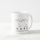 Karel spelled out in amino acids as K A R E L (Lysine Alanine Arginine Glutamic acid Leucine) on a mug for the scientist in you.