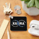 Karma - What Goes Around Comes Back Around (v1) Keychain. The artistic design exhibits the word "KARMA" within two never ending circles with "WHAT GOES AROUND" and "COMES BACK AROUND" curved to form sections of the circles. The two colors can be changed to your desired preference by editing the design. Makes the perfect gift for those who believe in Karma and in treating other well. Thank you for the support and visiting my store - UniquelyDistinct. Feel free to transfer this design on other Zazzle products.