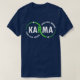 Karma - What Goes Around Comes Back Around (v1) T-shirt. The artistic design exhibits the word "KARMA" within two never ending circles with "WHAT GOES AROUND" and "COMES BACK AROUND" curved to form sections of the circles. The two colors can be changed to your desired preference by editing the design. Makes the perfect gift for those who believe in Karma and in treating other well. Thank you for the support and visiting my store - UniquelyDistinct. Feel free to transfer this design on other Zazzle products.