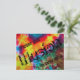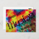 Bunte Postkarte im Batik-Look mit dem Spruch "Farben sind Illusion - ich denke farbig!"