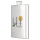 The product is a good size and came exactly as it was pictured. The lid is not attached to the flask, which could be dangerous on drunken nights... The print came out surprisingly well and looks very sharp. Would definitely recommend.