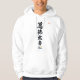 A sweatshirt hoodie based on Katsushika Hokusai characters with a brand logo that also features a Japanese seal