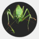 This sticker features a lively green katydid. Katydids are medium-sized to large insects. They are usually green, sometimes with brown markings, and are camouflaged to blend with the leaves they feed on. Their very long antennae distinguish them from grasshoppers. Seen up close, they seem to be aliens from outer space!
