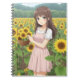 Kawaii Anime Girl in Sunflower Garden Notebook