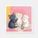 A joyful group of cats and mice is gathered together against a vibrant pink background with heart motifs in kawaii style