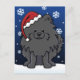 Kawaii Black Pomeranian Christmas Holiday Postcard