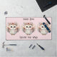 Kawaii Boho Owl Illustration Pink Desk Mat