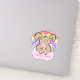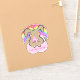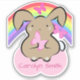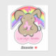 A contour sticker of a very cute, light brown, Kawaii style bunny rabbit with pink butterflies, in front of a beautiful rainbow. You can personalise it with your name.