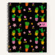 Personalise this cute cactus kawaii style notebook on black and pink with a monogram for back to school. Customise it further with your choice of paper fill and wire binding. Kawaii cactus pattern created in part with graphics from Freepik.com