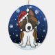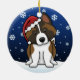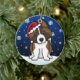 Cute Akita Christmas Ornament, drawn in kawaii cartoon! This adorable dog breed is wearing a red Santa hat, and snowflakes are falling all around him. Absolutely darling, perfect for the dog lover's Xmas tree!