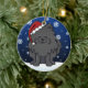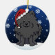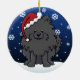 Cute Black Pomeranian Christmas Ornament, drawn in kawaii cartoon! This adorable dog breed is wearing a red Santa hat, and snowflakes are falling all around him. Absolutely adorable, perfect for the dog lover's Xmas tree!