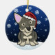 Cute Swedish Vallhund Christmas Ornament, drawn in kawaii cartoon! This adorable dog breed is wearing a red Santa hat, and snowflakes are falling all around him. Absolutely darling, perfect for the dog lover's Xmas tree!