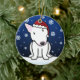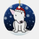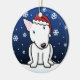 Cute White Bull Terrier Christmas Ornament, drawn in kawaii cartoon! This adorable dog breed is wearing a red Santa hat, and snowflakes are falling all around him. Absolutely adorable, perfect for the dog lover's Xmas tree! Other colours available.