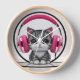 A kawaii-style cat, with a sweet expression and large eyes wearing oversized retro headphones
