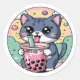 Kawaii Cat with Bubble Tea – Cute Boba Lover Stick Classic Round Sticker