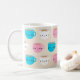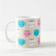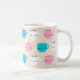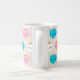 Repeat pattern of blue, pink and white cat-shaped cups of tea - or coffee - with kawaii faces.