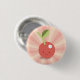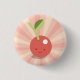 Customisable button with kawaii vector design featuring a cute happy face cherry on pink radial background.