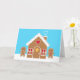 A cute cookie couple and their gingerbread house in the snow. Perfect for the holidays, Christmas and winter.