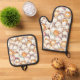 Kawaii Chubby Cartoon Cats With Hearts Oven Mitt & Pot Holder Set
