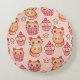 Kawaii Cute Cats and Cupcakes Pink Pattern Round Cushion
