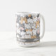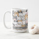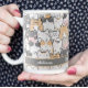 This personalised coffee mug is the perfect gift for someone who likes kitties! It features an illustrated pattern of cute kawaii-style cats in grey, tan, and pink. The editable text allows you to customise it with names or any message you wish.