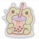 A fun kawaii frog sticker sipping boba, perfect for laptops, journals, or water bottles.