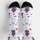 Step into spooky season with these adorable and playful Halloween socks! Featuring a fun, repeating pattern of cute cats dressed as witches and skeletons, friendly ghosts, smiling pumpkins, and spooky bats. The vibrant, kawaii-style design is printed on a crisp white background, making these socks a perfect, eye-catching accessory for trick-or-treating or everyday wear.