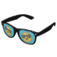 An illustration of a kawaii happy sun with black sunglasses. Swimming on the beach under the sun is one of the activities you can do during summer. This cartoon funny with mouth open emoji design is a gift idea for yellow and orange colours lovers, and outdoor activity lovers.